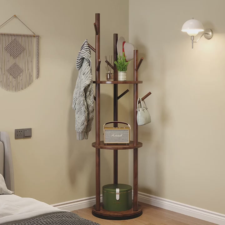 Maximize vertical storage with this 360° Rotating Hardwood Coat Rack, designed to organize coats, hats, bags, accessories, and small décor items in one compact footprint.