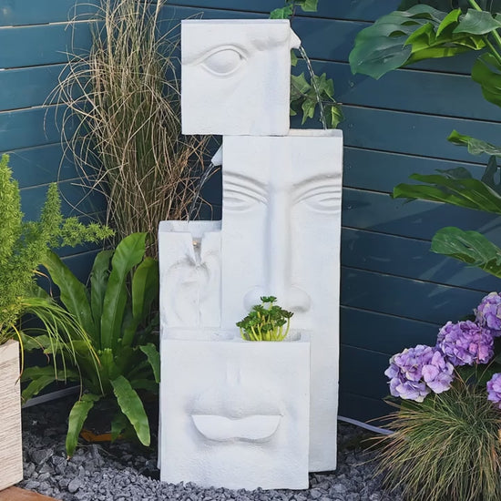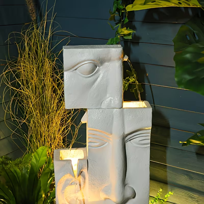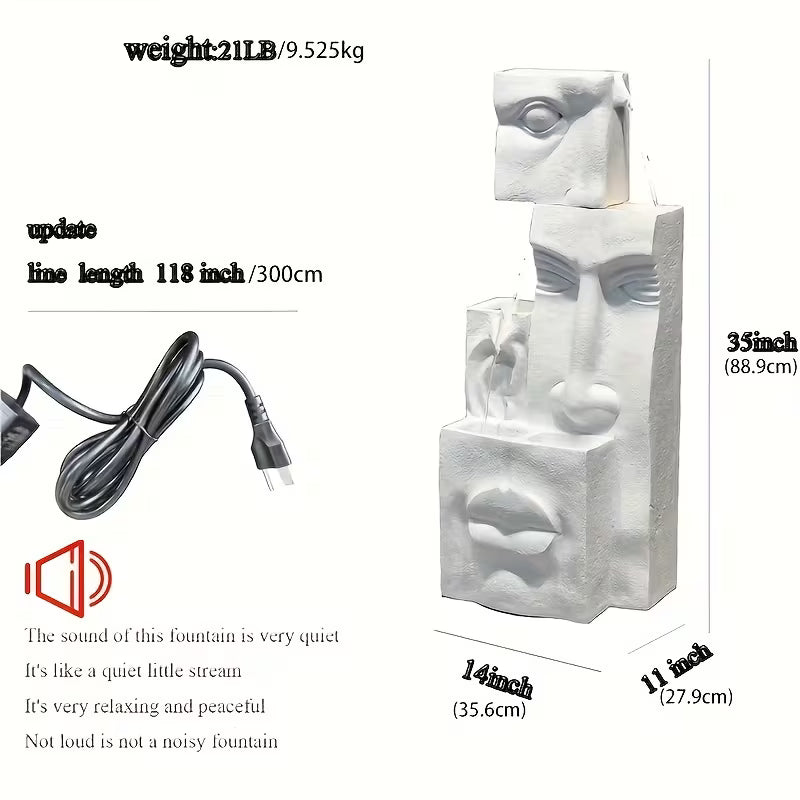 Bring modern art and peaceful ambiance into your home with this 4‑Tier Modern Face Waterfall Fountain. Designed with a sculptural face silhouette and cascading water tiers, this fountain creates a soothing, continuous flow illuminated by warm LED lighting.