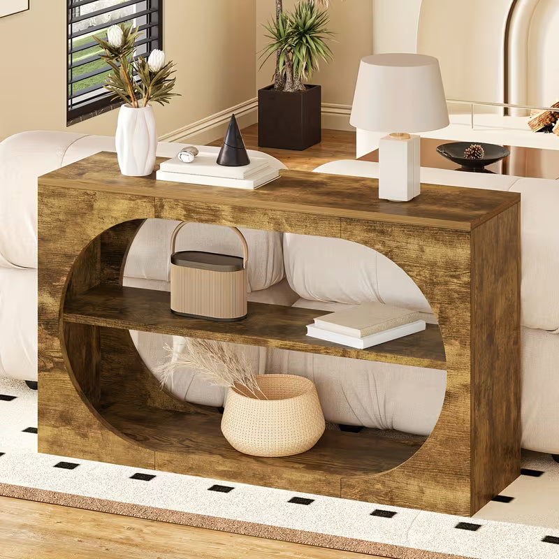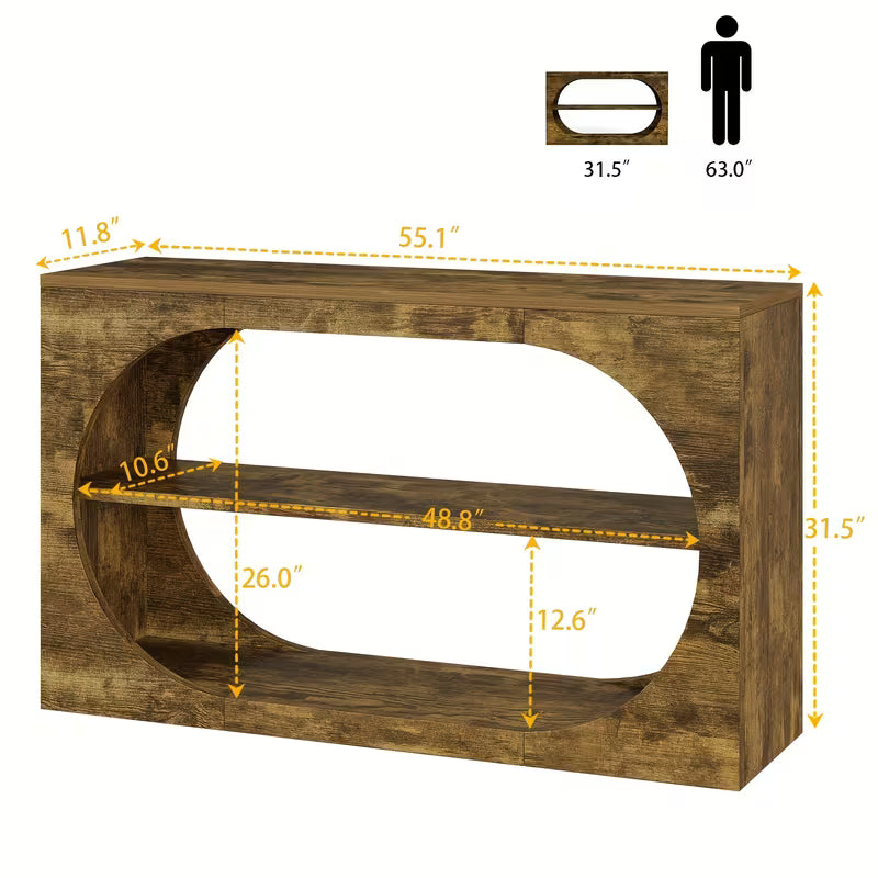 This 55.13" Rustic Farmhouse Foyer Table brings functional style to any entryway, hallway, or living room. Designed with a narrow profile and double‑layer storage shelves, it maximizes space while adding warm, natural wood grain character to your home.