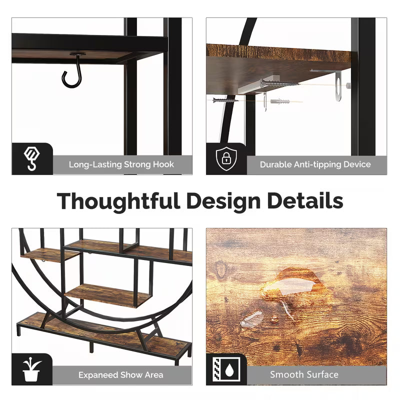 Showcase your plants in style with this 63" Indoor Plant Stand featuring a striking full‑moon round frame and five integrated LED light strips. Designed for both display and plant growth, this tiered metal stand provides ample space for houseplants, succulents, herbs, and decorative greenery.