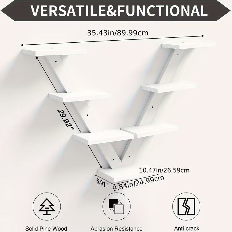 Bring character and vertical storage to your walls with this 7‑Tier Wooden Floating Shelf. Designed in a unique V‑shaped, tree‑branch style, this shelf adds rustic charm while providing functional space for books, plants, candles, collectibles, and small décor pieces.