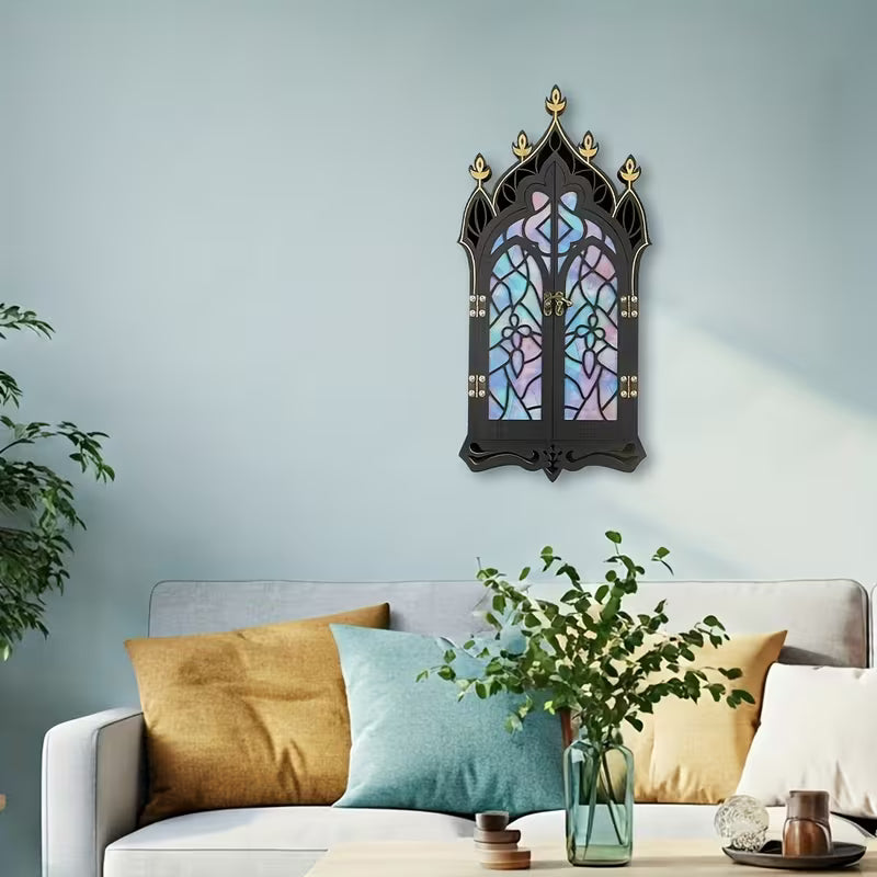 Crafted from painted manufactured wood, it brings a European retro aesthetic to bedrooms, living rooms, meditation corners, or entryways. Despite its compact size, it offers enough space for small treasures and decorative accents. Lightweight and easy to mount, it’s an effortless way to elevate your wall décor.