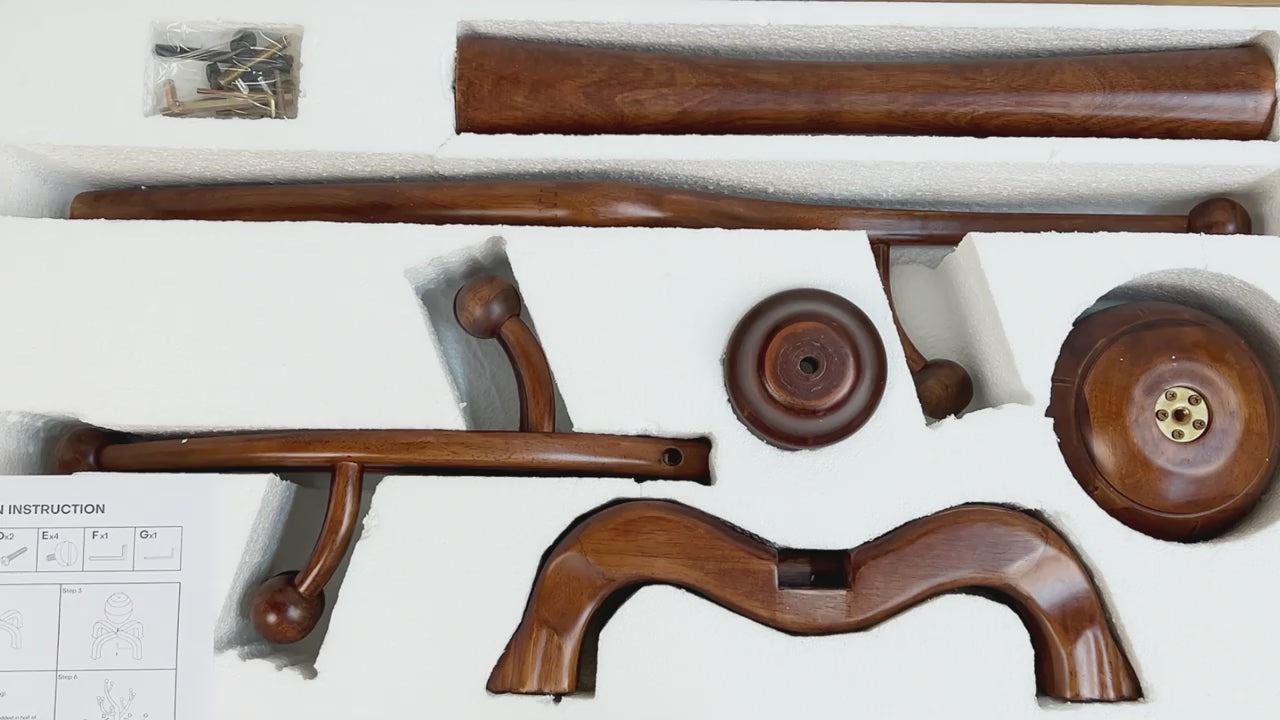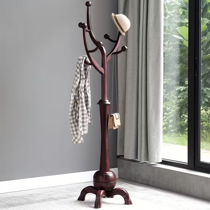 Bring warmth, style, and organization to your home with this Freestanding Wooden Coat Rack. Crafted from solid rubberwood with a rich walnut brown finish, this coat tree blends natural beauty with functional design.