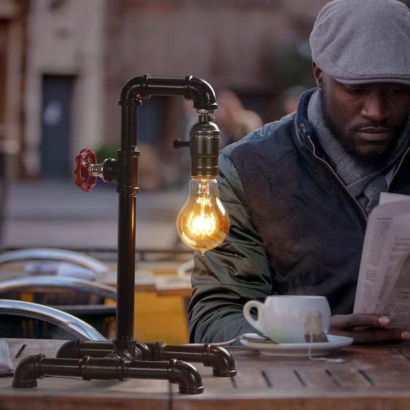 The exposed‑bulb uplight design adds a warm, atmospheric glow, making it ideal for bedside tables, office desks, cafés, bars, and themed décor corners.