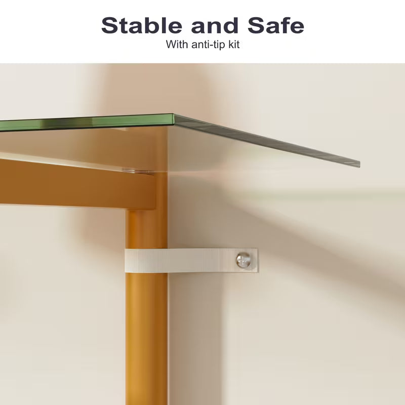 Elevate your living room or entryway with this Mid‑Century Modern Glass Sofa Table, designed with a sleek tempered‑glass top and elegant golden metal legs. The two‑tier structure provides both style and function, offering space for décor, books, plants, trays, and everyday essentials.